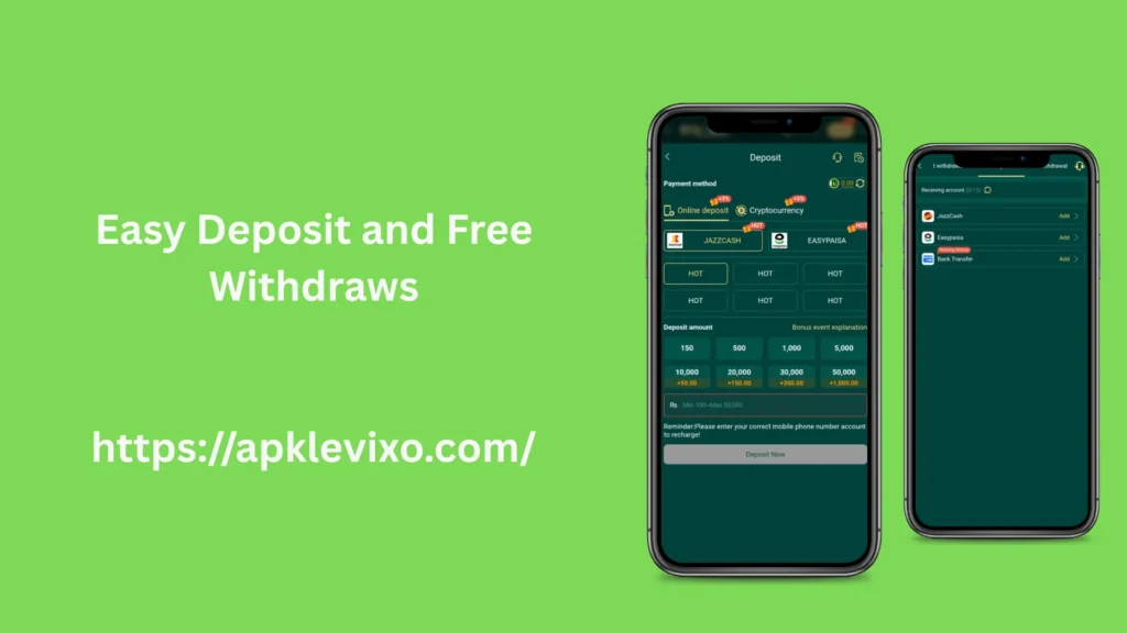 Users can add money quickly using local payment methods like Easypaisa and JazzCash. The deposit system is smooth and usually processes transactions within minutes.